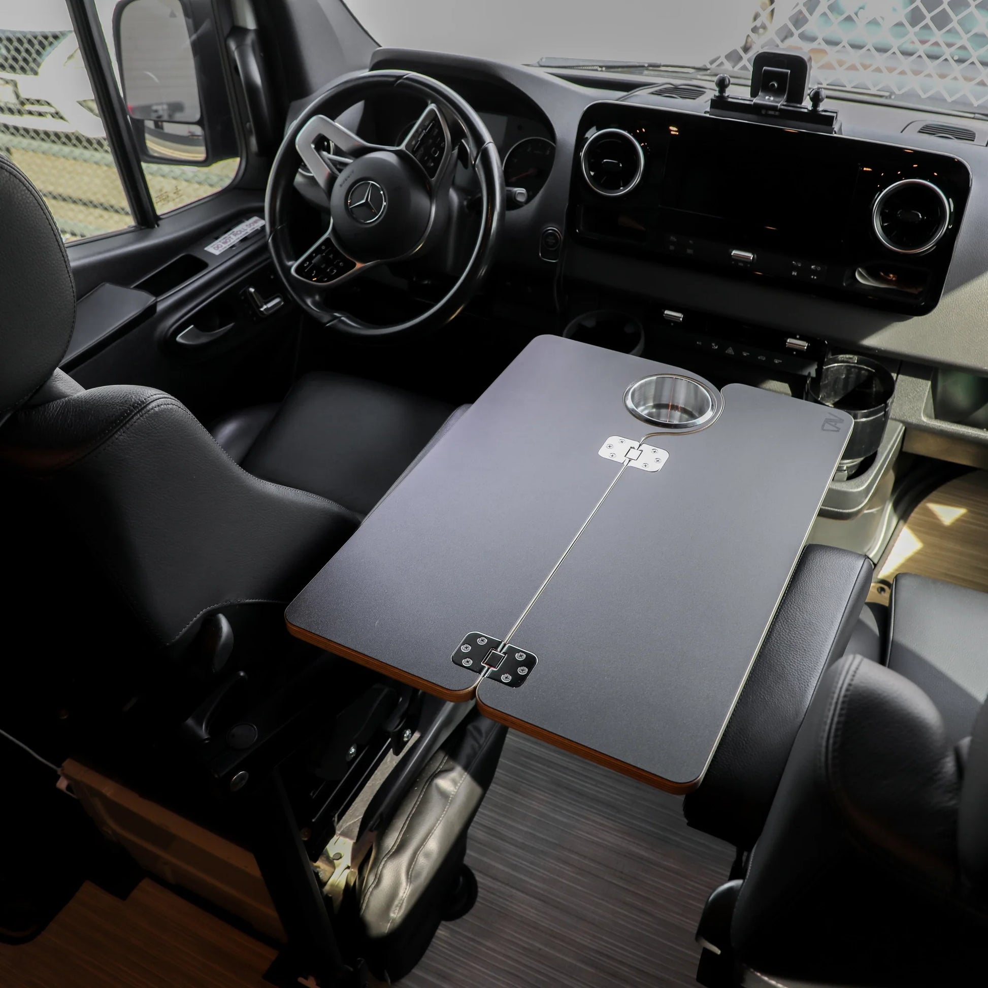 Meet the perfect companion for your van adventures, no matter if you're driving a Van Revel, Storyteller, Jayco, Entegra, or a Sprinter. Our tables are here to add that extra touch of home and functionality to your journeys. Choose from five beautiful finishes, each one crafted to not only look great but to last through all your travels. We know every van is unique, so we've made sure our tables easily fit with both the Lagun system and pedestals, thanks to handy threaded inserts. Whether you're sharing a meal, plotting your next route, or just need a sturdy place to rest your coffee cup, these tables are your go-to.